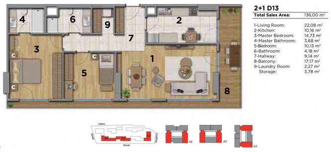 A total of 2,500 homes and commercial units are being built, with choices ranging from 1+1 to 5+1 homes. You will live elegantly in apartments built with first-rate construction materials, and planned with exquisite expertise.