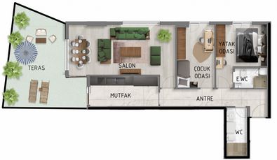 It contains 112 apartments, the types of apartments range from 2 + 1 to 3 + 1, and the project also contains 6 shops.